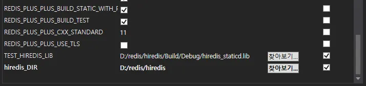 TEST_HIREDIS_LIB : 빌드해서 나온 hiredis_static library 파일