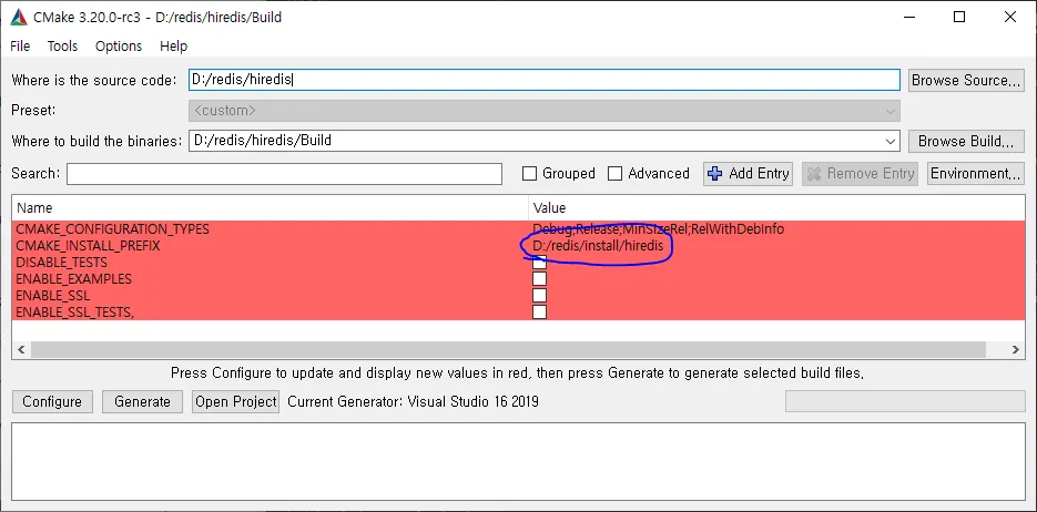 hiredis_Dir : 다운로드 받았던 hiredis 폴더