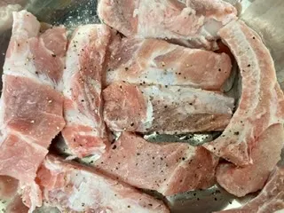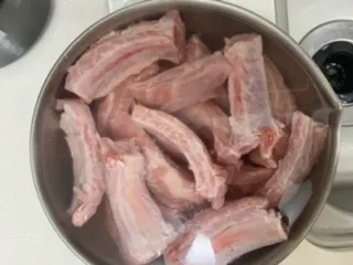 등갈비를 물에 한시간 담가서 핏물을 뺍니다.