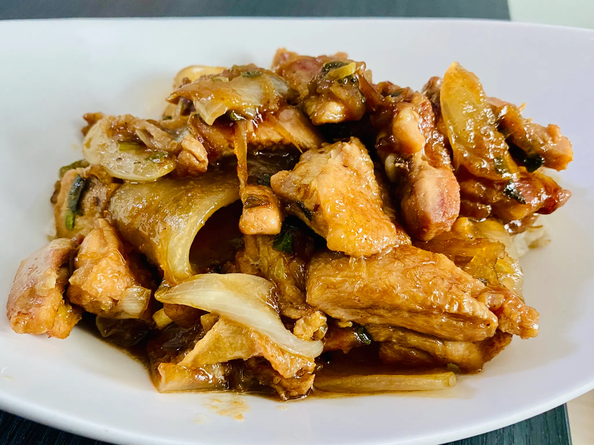 닭다리가 밥을 덮어서 밥 실종. 분명히 저 아래 살아 있습니다.