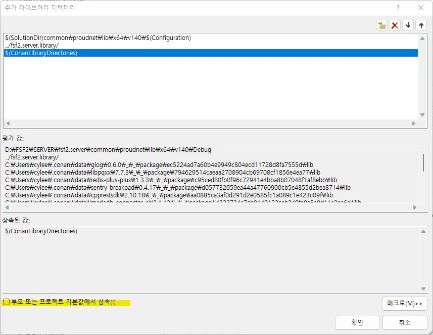 참고 : 빌드한 후의 폴더 설정값은 conan_XXXXX_var_debug_x64.props 파일 안에 정의되어 있다.
