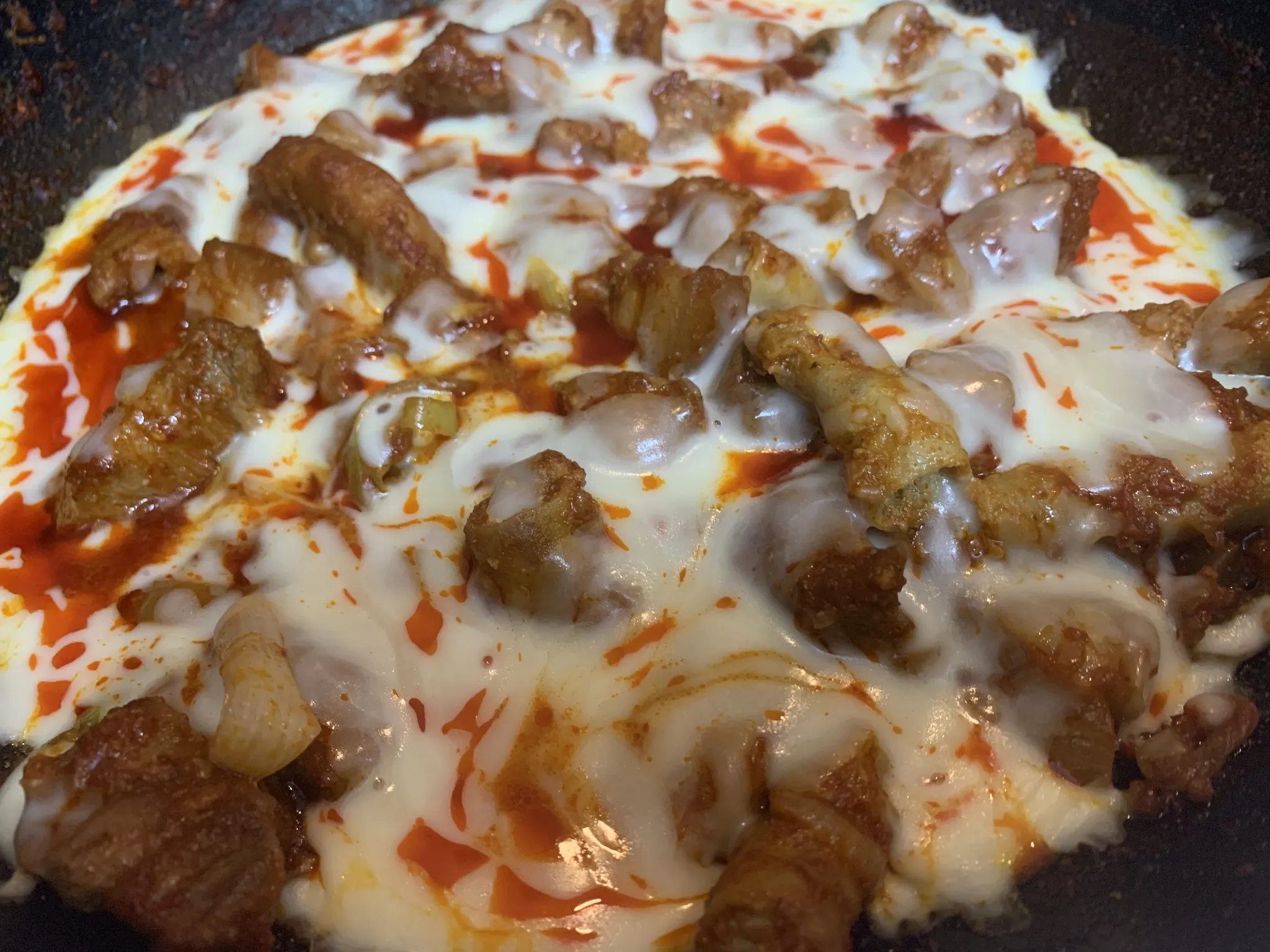 어느 정도 익었으면 모짜렐라 치즈 두봉지를 넣어서 약분에서 3분정도 익힌다.